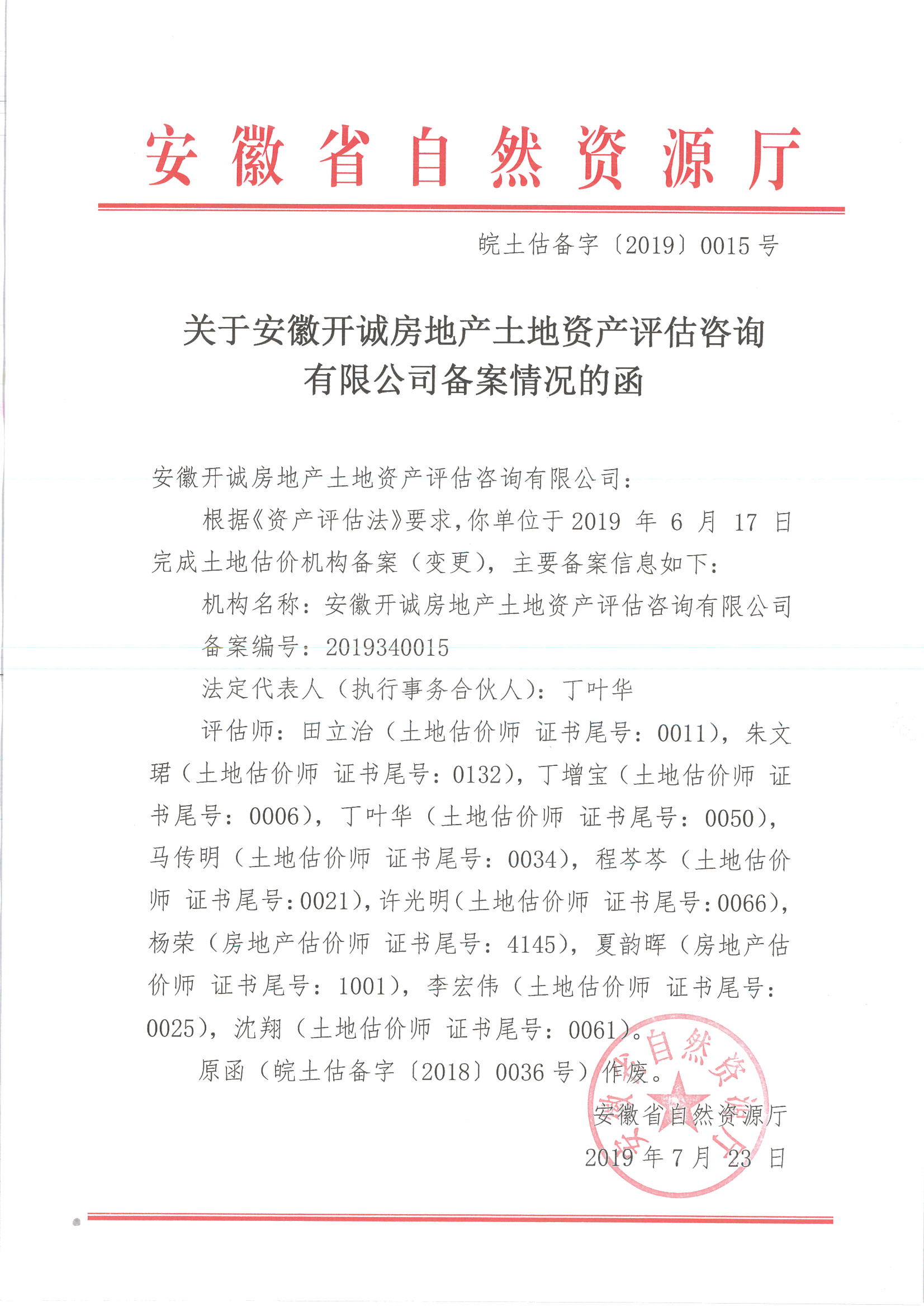 安徽開誠房地產土地資產評估咨詢有限公司成立于2003年,辦公地址為安徽省合肥市蜀山區金寨路91號立基大廈B座1709室,營業場所約500平方米,注冊資金貳佰萬圓?,F已取得安徽省住房和城鄉建設廳頒發的房地產評估壹級備案資質、安徽省自然資源廳頒發的土地評估A級備案資質及安徽省財政廳頒發的資產資質,公司目前共持五項許可類資質,可從事七類服務項目,包括房地產評估、土地評估、單項資產及資產組合評估、價格鑒證評估、不動產測繪與工程測量、社會穩定風險評估及工程造價與咨詢等業務。 >>查看詳情